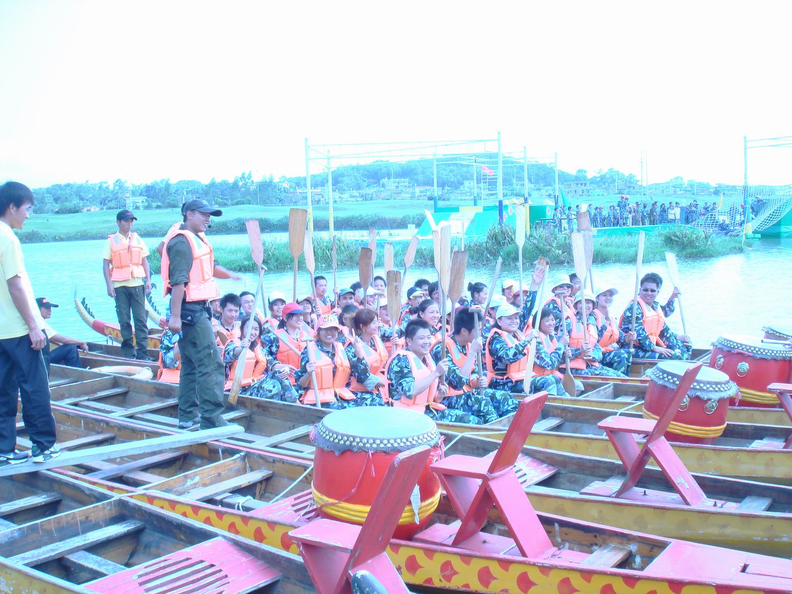 中途吃飯休息不在絮叨。下午2點半開始,開始了水上活動的拼殺。這次的活動,按照大伙兒的想法,是眾多人“濕身”的厄運。關于“濕身”事后種種的艷景自有許多狼在YY自娛自樂中。水上活動分兩種,龍舟賽和勇闖巨龍島。
