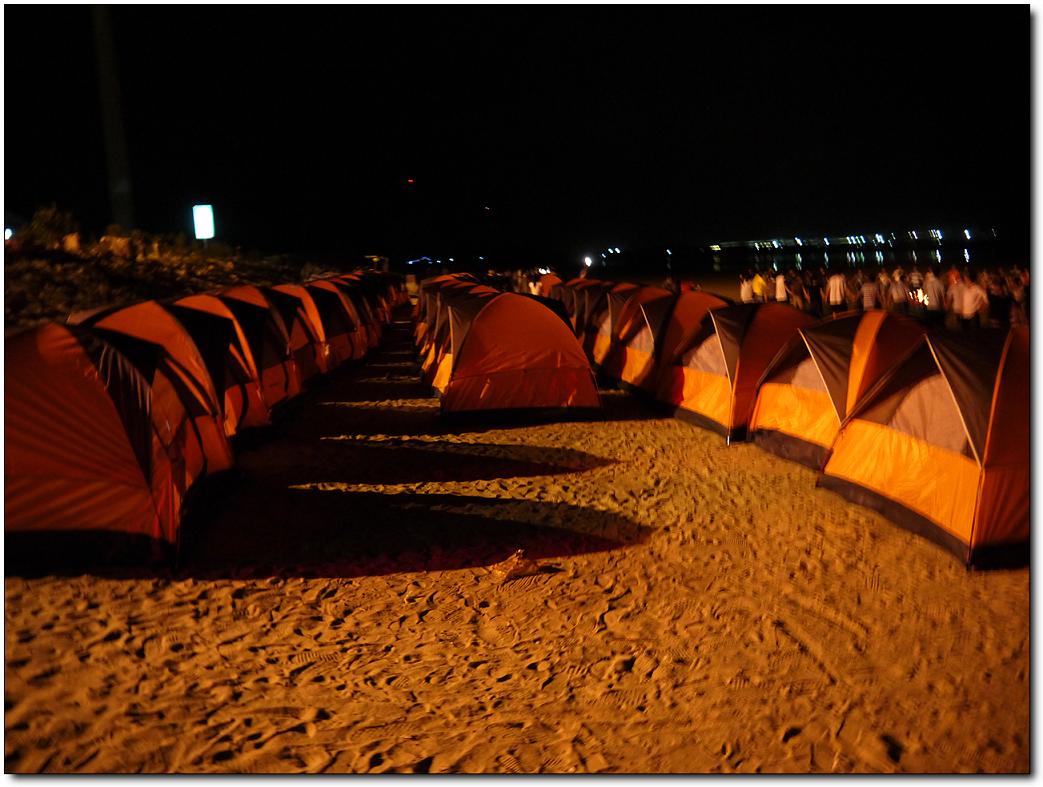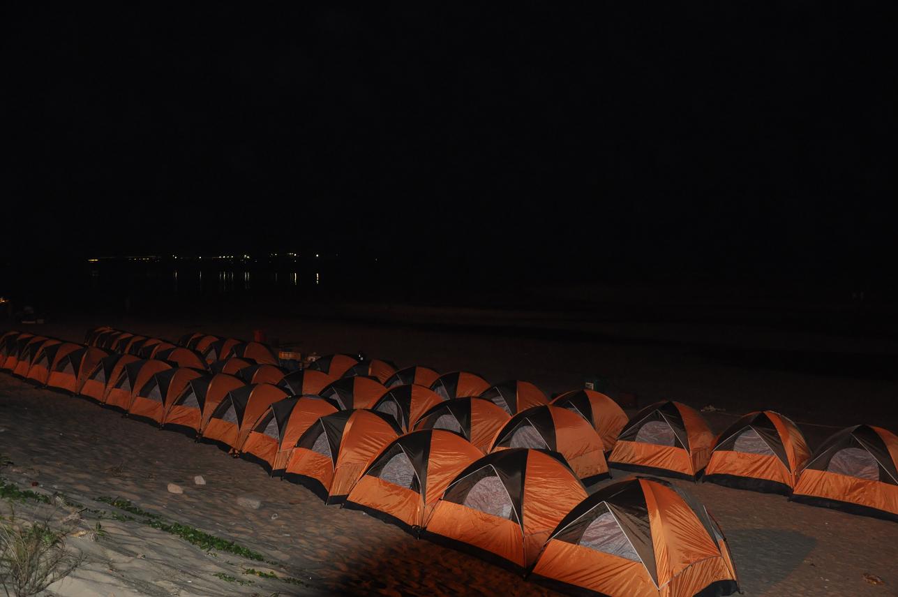 快樂的時光總是過得特別的快,轉(zhuǎn)眼間已到了23:00點了,這海灘上留下我們的足跡留下我們的歡聲笑語,但美好的記憶和愉快的心情被帶回來了,而且還將延緩著。23:00點大家興高彩烈的情緒中結(jié)束了燒烤與戲水游戲,各自回到自己的帳篷,自由活動,有的開始休息養(yǎng)好精神等待明天的到來,有的幾個一塊玩牌。我靜靜躺下聽著窗外的徐徐的海風聲。這時,感覺很疲倦的作用下,我開始有了困意,最先鉆進帳篷休息了,在帳篷里,聽著他們調(diào)侃著,也跟著竊笑,打開手機上網(wǎng)和在線的群友聊聊,大約一個小時我就下線了,我閉上雙眼,感覺真愜意啊,在海邊里,我們以天為房,以地為床,跟大地零距離的貼近著,聆聽著海水的天籟之聲,聞著泥土的芳香,遠離喧鬧的城市,在這靜靜的沙灘上,盡情的感受著大自然的氣息。這是多么令人心曠神怡的美好生活啊!對于久居城市的人來說,面對現(xiàn)代生活的壓力,露營對于我們來說多具有誘惑力啊。實際上,這份頗具個性化和具有代表性的戶外活動,讓我們充分回歸自然,親近自然。