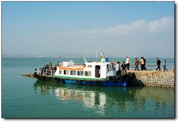 清晨,大家如約來到公司樓下的籃球場,籌備小組早早地等候在那兒為大家服務(wù),安排好每個人的座位,大家?guī)е篮玫脑竿殡S著小孩們的喧吵聲,乘坐兩輛豪華大巴準(zhǔn)時出發(fā)。在車上聽隨車導(dǎo)游的介紹,多了些許的期待。伴隨一路鄉(xiāng)村田園的景色,不免為繁雜工作之余,一次很好的放松。一個小時的車程,說笑中到達(dá)了大瞪島。步行到了碼頭,映入眼簾的是一片深藍(lán)的大海,感受著風(fēng)的氣息、海的味道。