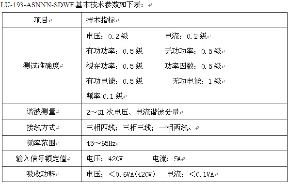 LU-193-ASNNN-SDWF,基本技術(shù)參數(shù)表