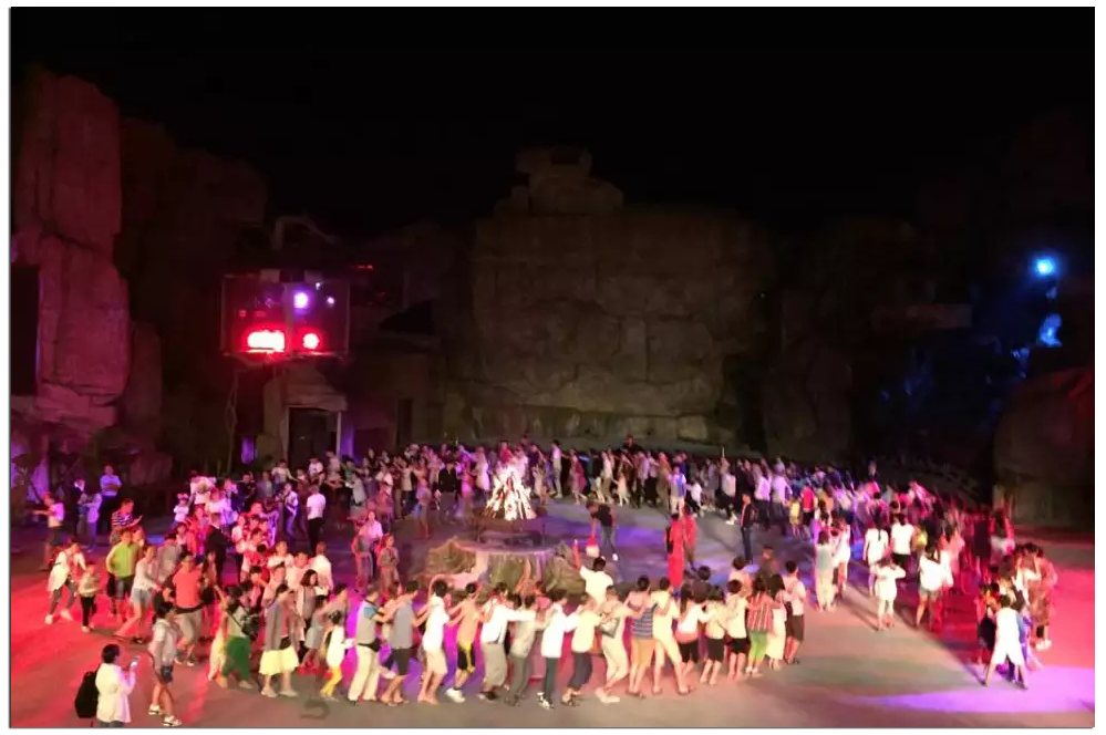 晚會有開場的草裙舞、樹葉吹奏表演、雜技表演、火把絕技表演;節(jié)目精彩絕倫,配上背景不斷變化的燈光,高山流水及噴泉,襯托的恰到好處。隨著篝火的點燃,和觀眾互動環(huán)節(jié)開始了,大家在篝火前圍成了幾大圈,隨著音樂,跟著最前面的演員一起跳起了草裙舞,還有熟悉的兔子舞。很久很久沒有這么放松過了,真是個難忘的夜晚。